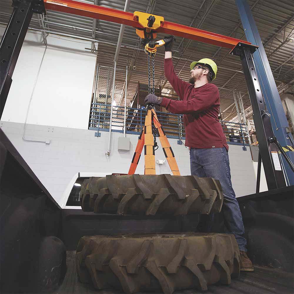 - 9 positive stops to provide a sturdy overhead lift point for lifting car engines, heavy machinery and other equipment