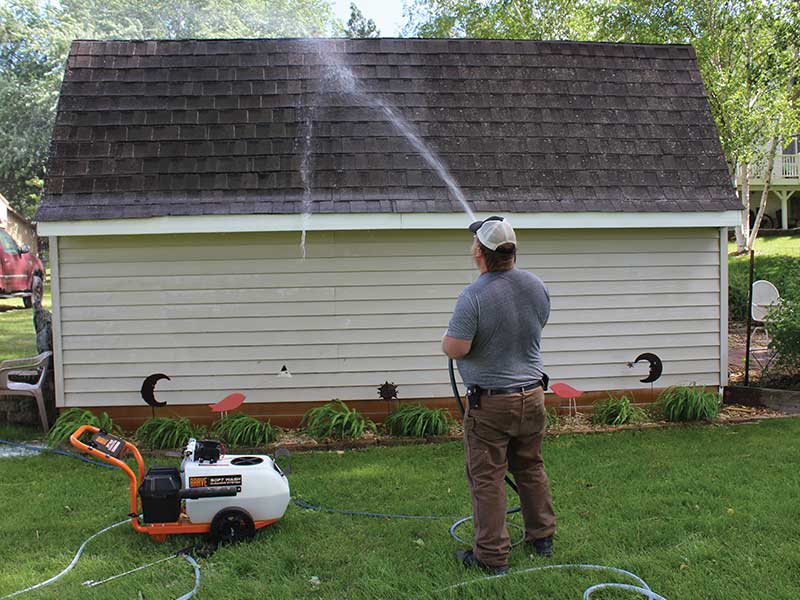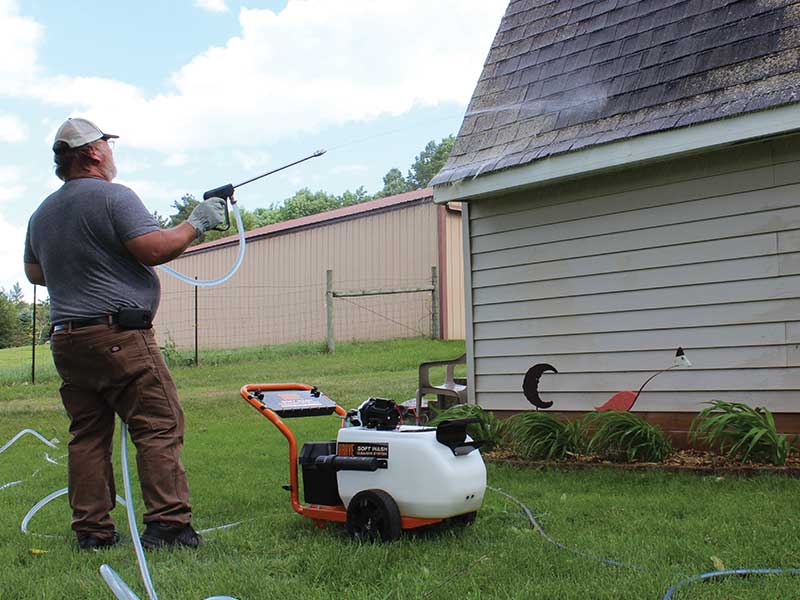 The BravePro Soft Wash System delivers high performance, low-impact cleaning to effectively remove and kill black mold, mildew, moss, lichens, and dirt from roofs, vinyl siding, decks, fences, bricks, and more — no scrubbing or high pressure required.