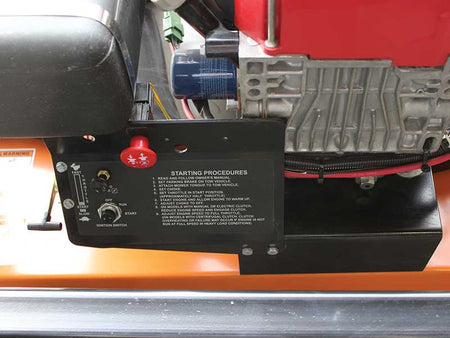 This Brave Pro 60" Finish Cut Mower features a commercial grade deck assembly, 4 tire design, two point height adjust system and an electric clutch blade engagement. It can be pulled directly behind or fully offset to the side of towing vehicle.