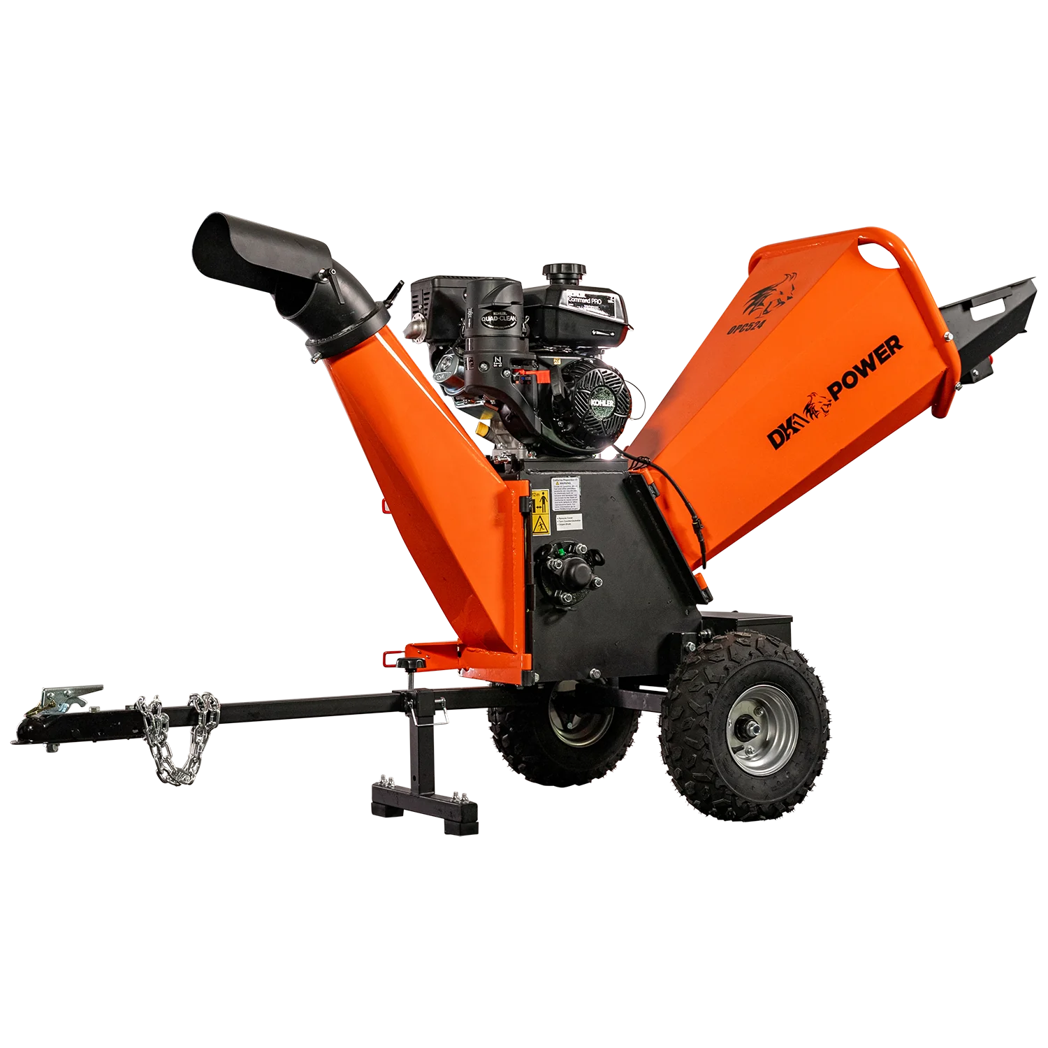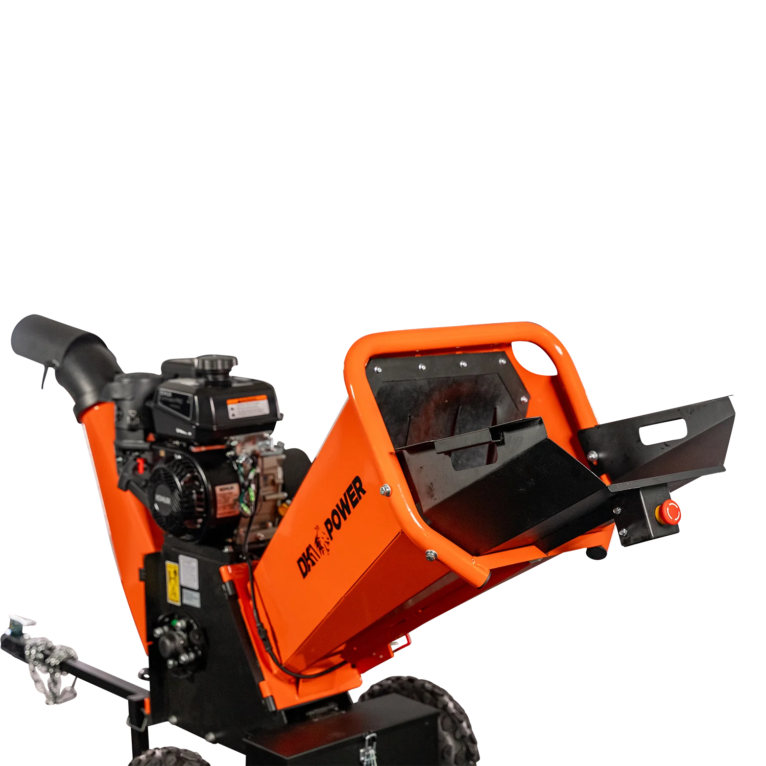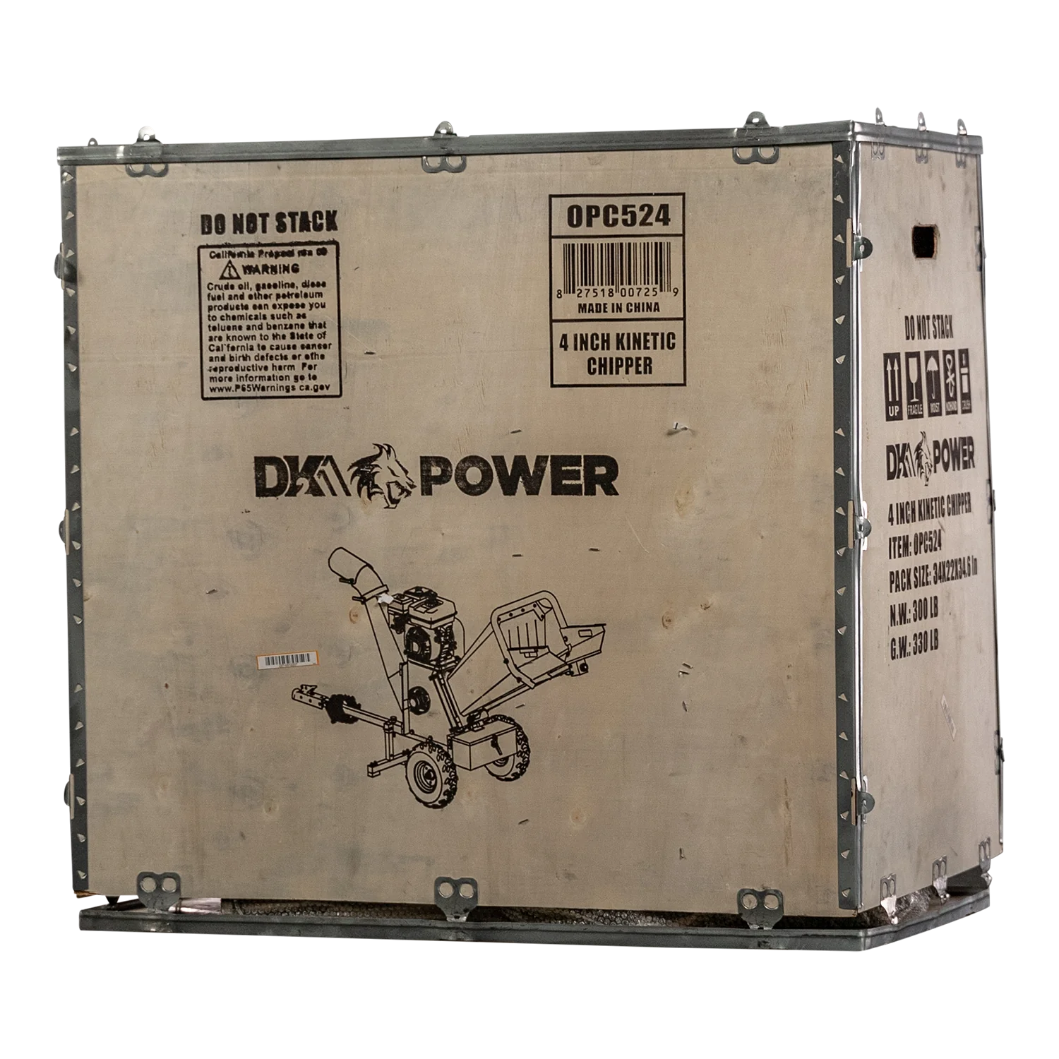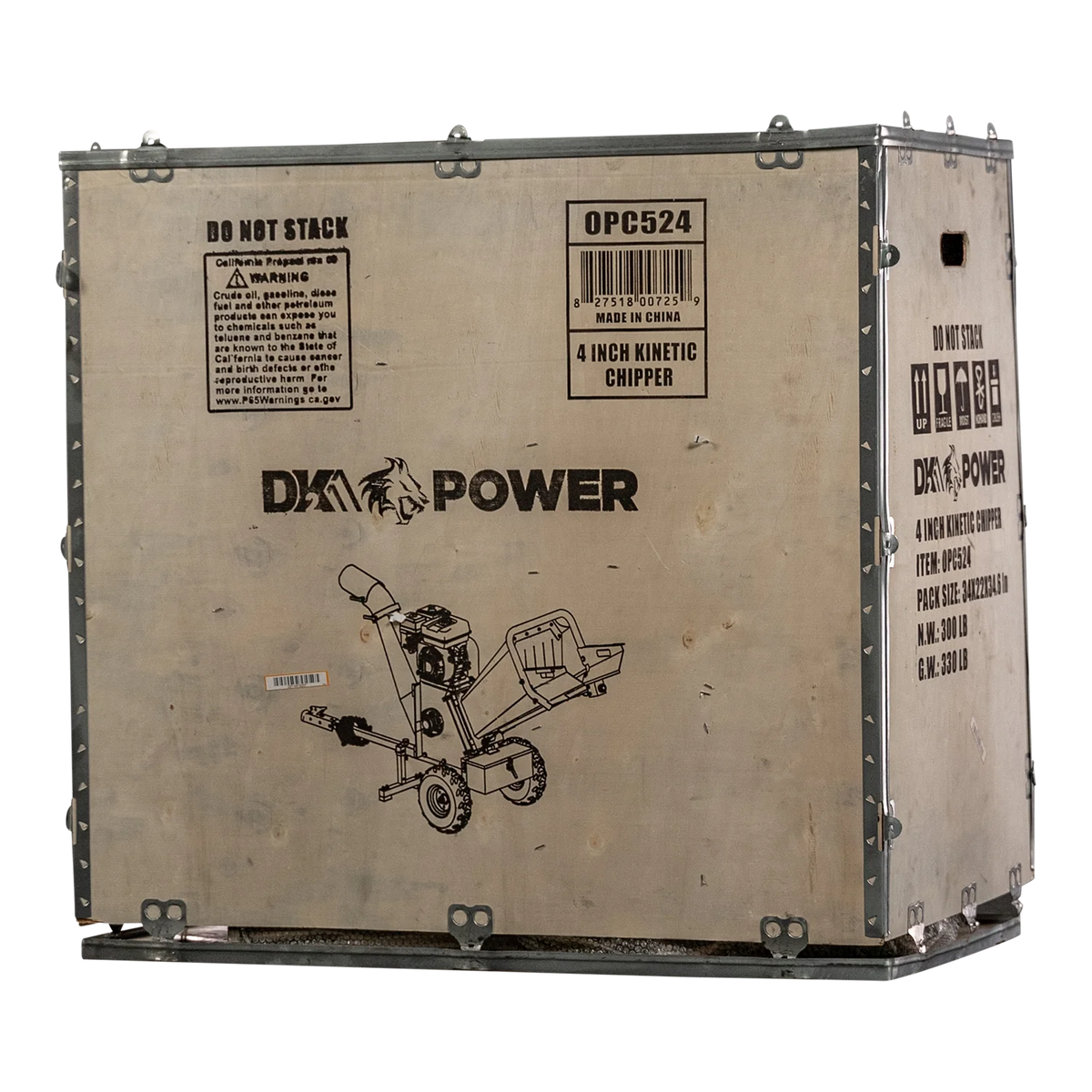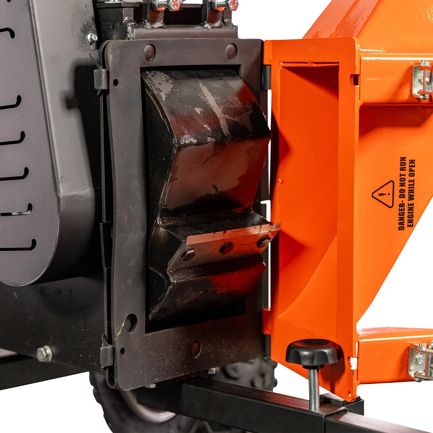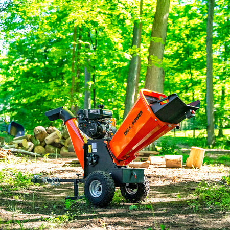 The engine delivers 10.5ft/lb torque for superior cutting performance, and the dual V-belt direct drive and kinetic cyclonic drum pulverize branches and trees up to 4-inch diameter. The tool-free dual swing chutes quickly open for easy drum access making cleaning and blade changes a snap! The feed chute features dual integrated handles to make positioning the OPC524 near effortless. Finally, this machine comes equipped with a quick-drop stand, and a 1-7/8 inch ball removable tow bar to move around job sites with ease.