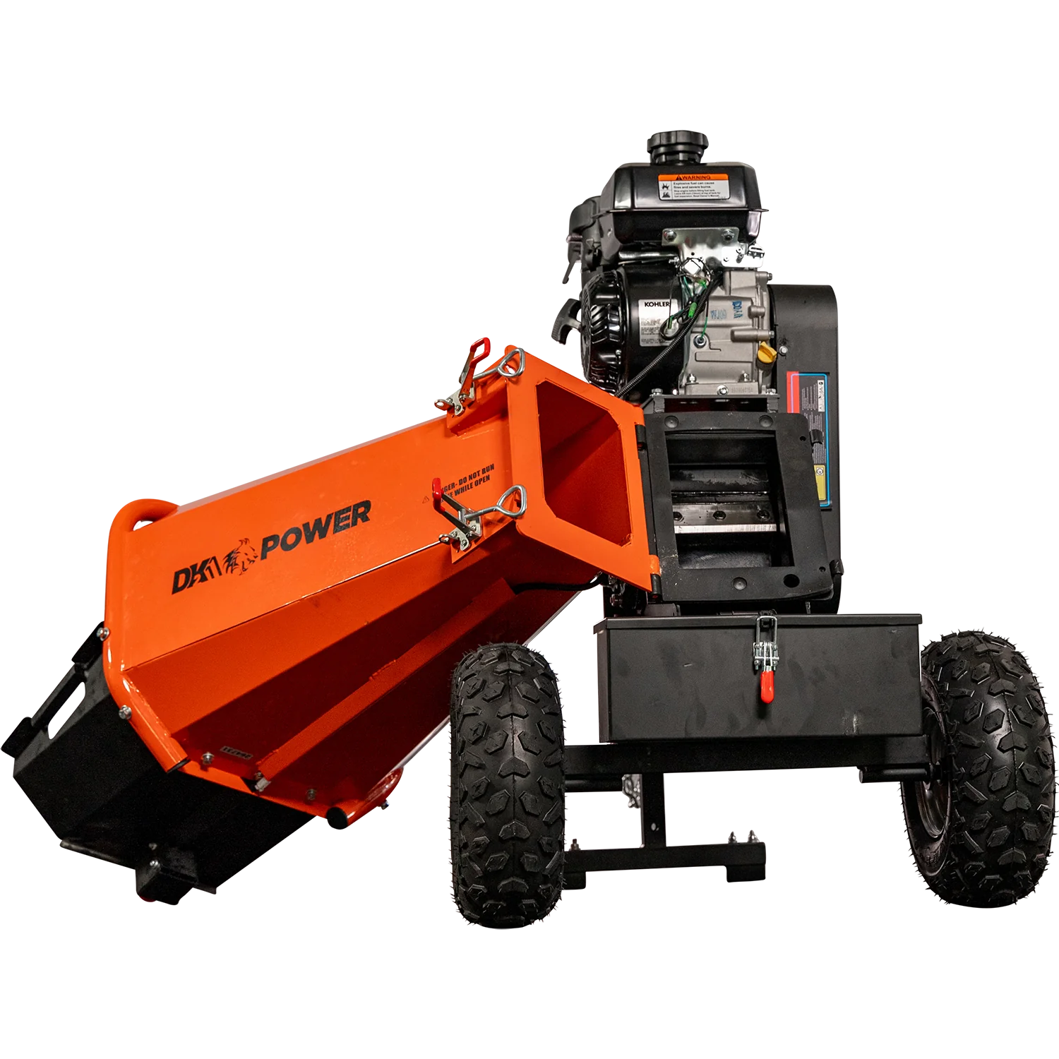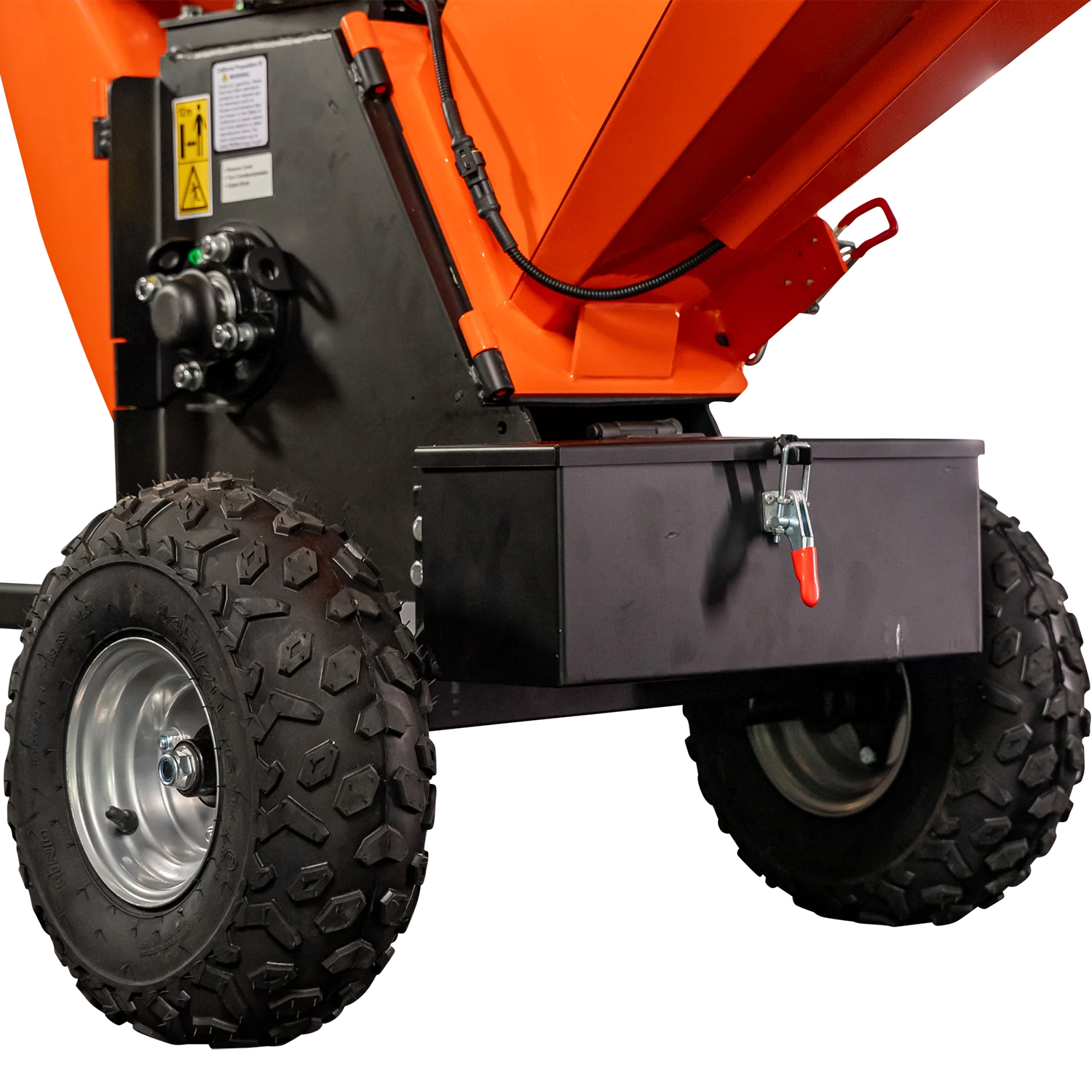 The OPC524 4-inch kinetic chipper is powered by, what has become an industry standard, KOHLER® Command PRO® CH270 7HP 208cc engine. This unit features dual swing chutes, double-edged, reversible high-speed cutting blades, an extended load chute with a safety e-stop, bearing-mounted ATV tires and rims, and includes a built-in toolbox!