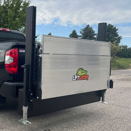 TruckGator is our liftgate for truck applications, featuring a 66” wide by 34” long platform with manual or power stabilizers. The capacity is rated at 1,300lbs and is easily removable. No modifications are necessary. Simply slide the unit into your hitch-receiver and you are ready to go!