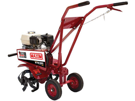 Mix, Till, and Dig with Maxim's Commercial Compact Tiller. With Maxim's smallest serviceable roller chain and sprocket transmission, the tines rotate at approximately 150 rpm and can really throw dirt!
