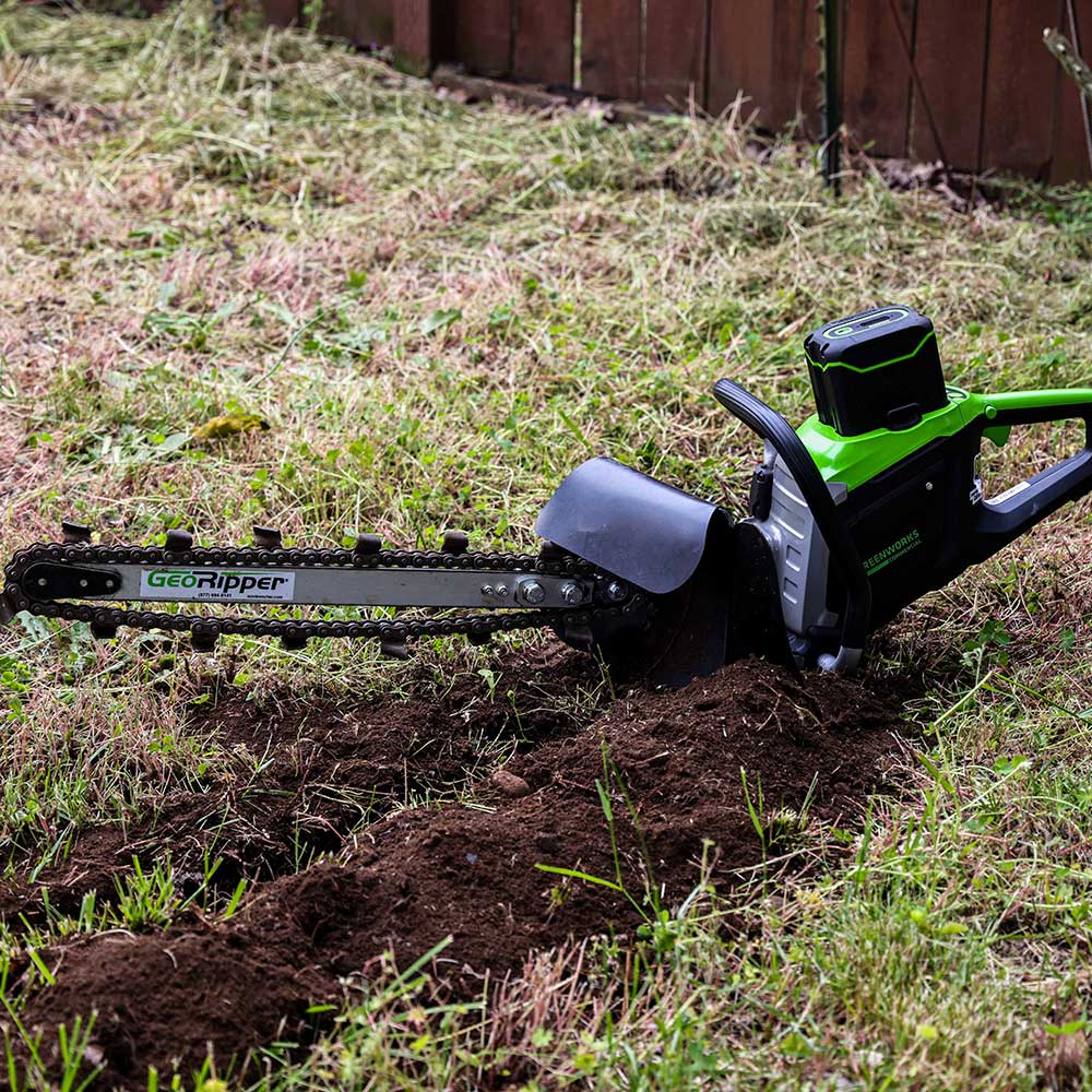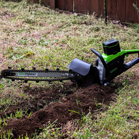 Experience the next generation of trenching with the GeoRipper 82V, now powered by GreenWorks Commercial's advanced 82V lithium-ion battery system. Designed for efficiency and sustainability, this electric trencher offers the same power as a gas unit—without the noise, fumes, or maintenance.