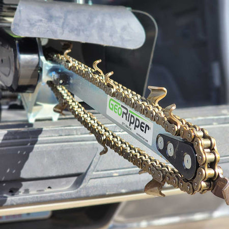 Includes GeoRipper two-stroke engine, 27-in. digging bar with nose bar end assembly and nose sprocket, 27-in. deep x 2-in, wide digging chains (2-pack), additional drive belt, nose bearing, and bar end assembly screws, engine tool kit, chain connector link, full size 18mm and 13mm combination wrench, and GeoRipper owner's manual