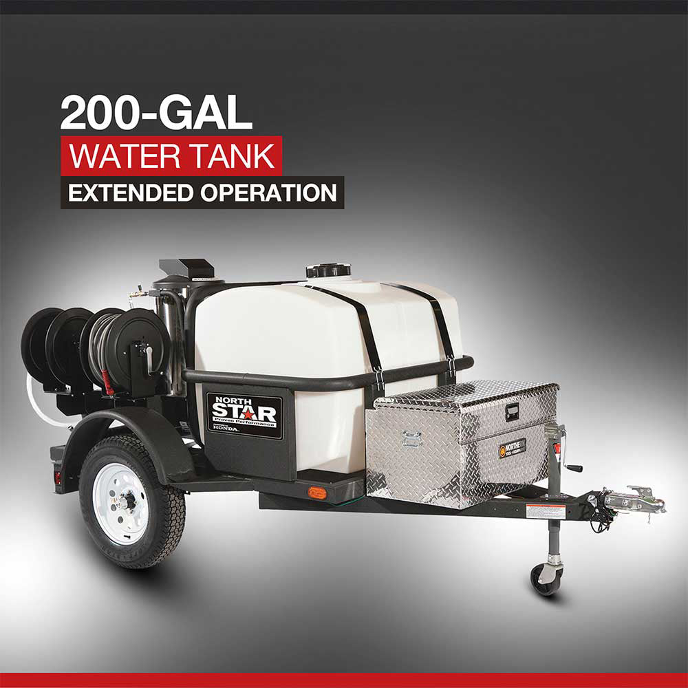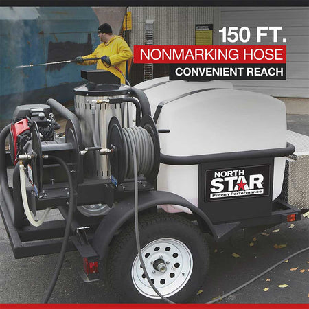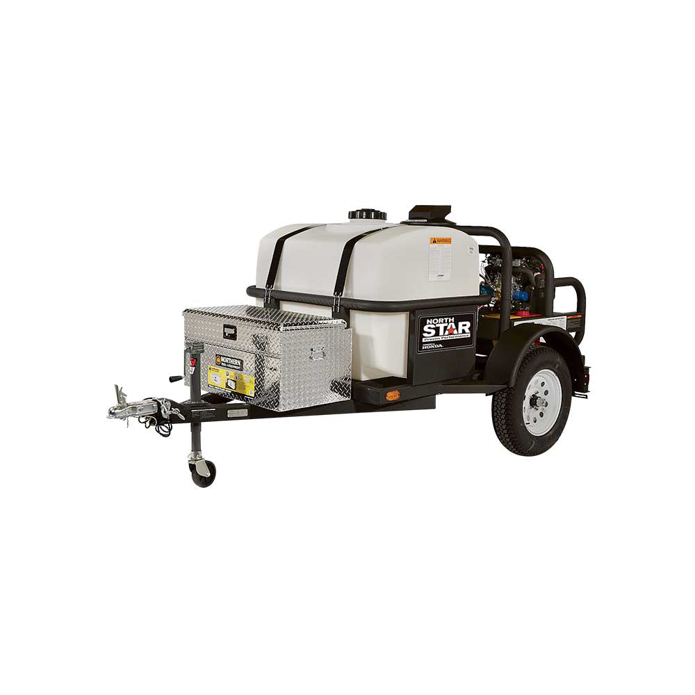 NorthStar products are engineered for professional use, backed by premium components (Honda engines, CAT pumps, Parker filtration, stainless fittings) that are designed to last years under heavy load. This trailer-mounted unit eliminates downtime by combining portability, hot water cleaning, and self-contained water supply into one solution.