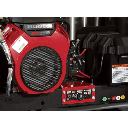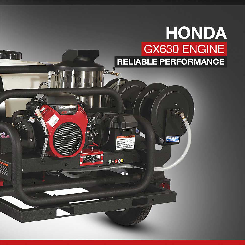 Take hot water cleaning anywhere with NorthStar’s rugged trailer-mounted pressure washer system. Featuring a self-contained 200-gallon water tank, commercial-grade Honda GX630 V-twin engine, and reliable CAT direct drive pump, this unit is built for demanding jobs where electricity and running water aren’t available. Perfect for remote worksites, fleet washing, heavy equipment cleaning, and industrial applications.