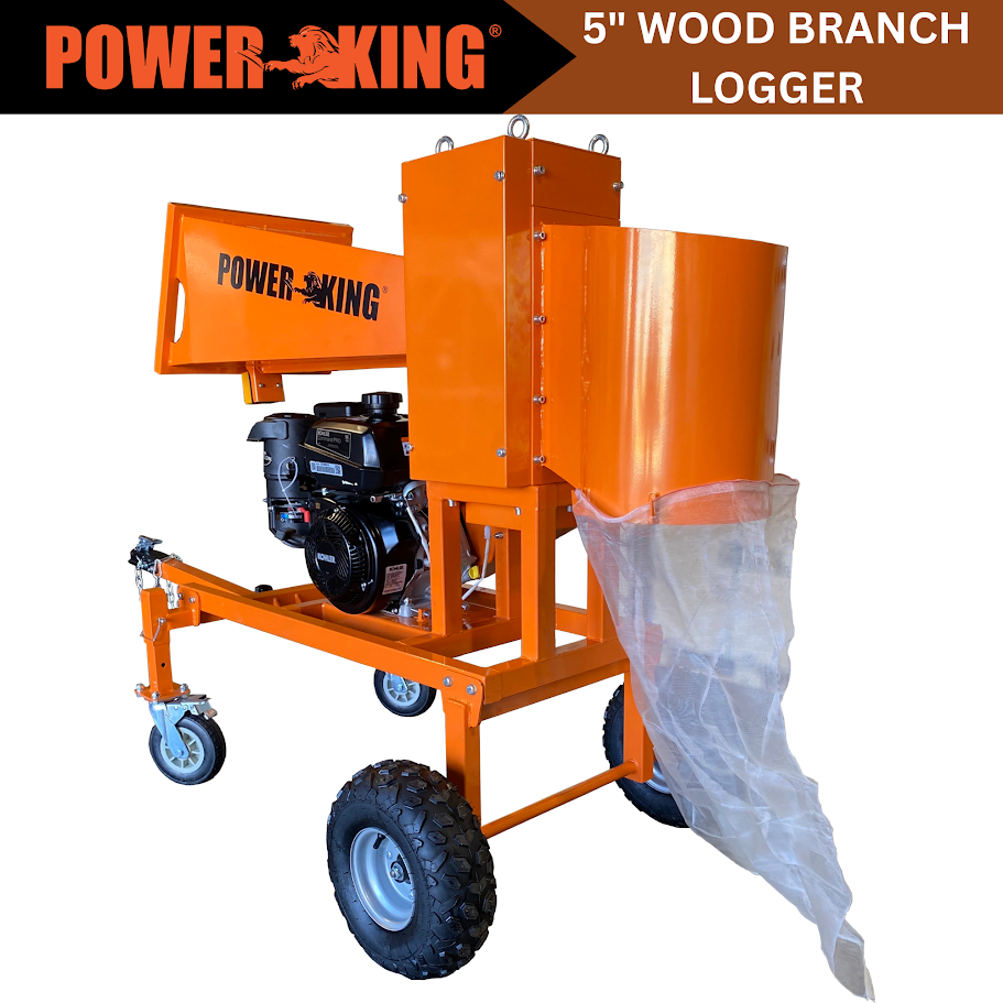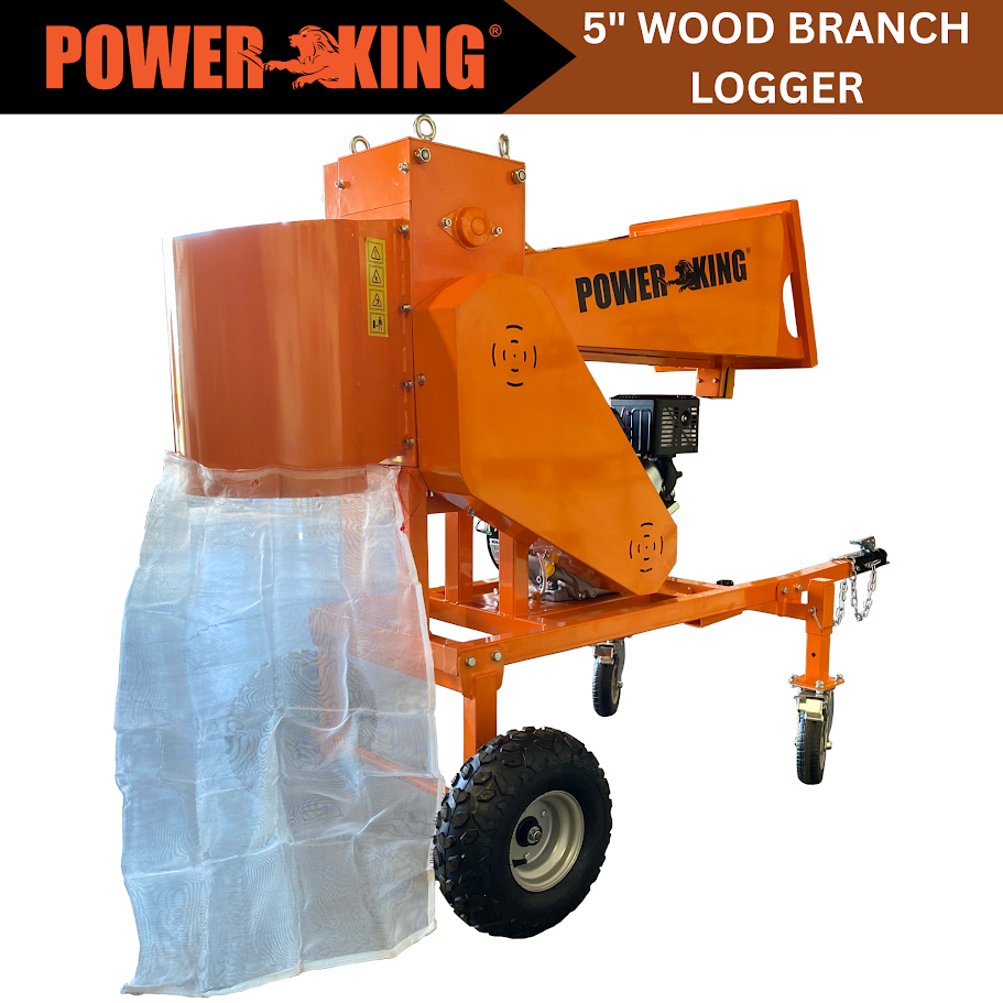 The Power King 5" Wood Branch Logger, powered by the robust Kohler CH440 Command Pro Commercial Engine, offers superior advantages over traditional wood chippers. Unlike chippers, which merely break down wood into mulch, this logger efficiently processes up to 5-inch diameter branches into manageable logs, making it ideal for fuel, construction, or sale.