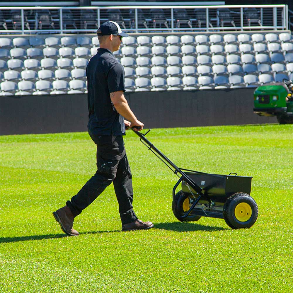 - The 36-in. commercial drop spreader applies grass seed, fertilizer, and ice melt, and is perfect for all-season use