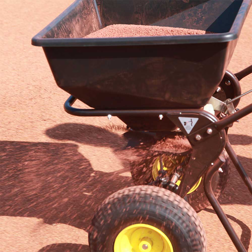 The Spyker ERGO-PRO™ powder-coated walk-behind broadcast spreader is designed for efficient, hassle-free spreading of seed, fertilizer, ice melt, and more. With an 80-lb capacity, it delivers consistent performance for a variety of applications.