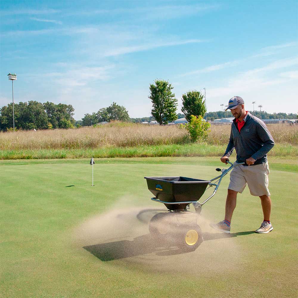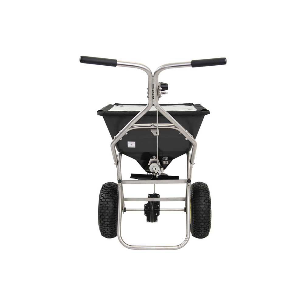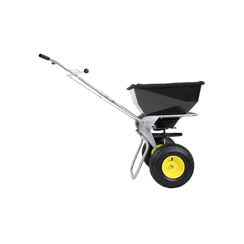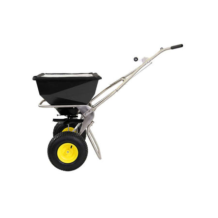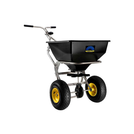 The Spyker ERGO-PRO™ stainless steel walk-behind broadcast spreader is designed for effortless, precise spreading of seed, fertilizer, ice melt, and more. With an 80-lb capacity, it ensures reliable performance for both residential and commercial applications.