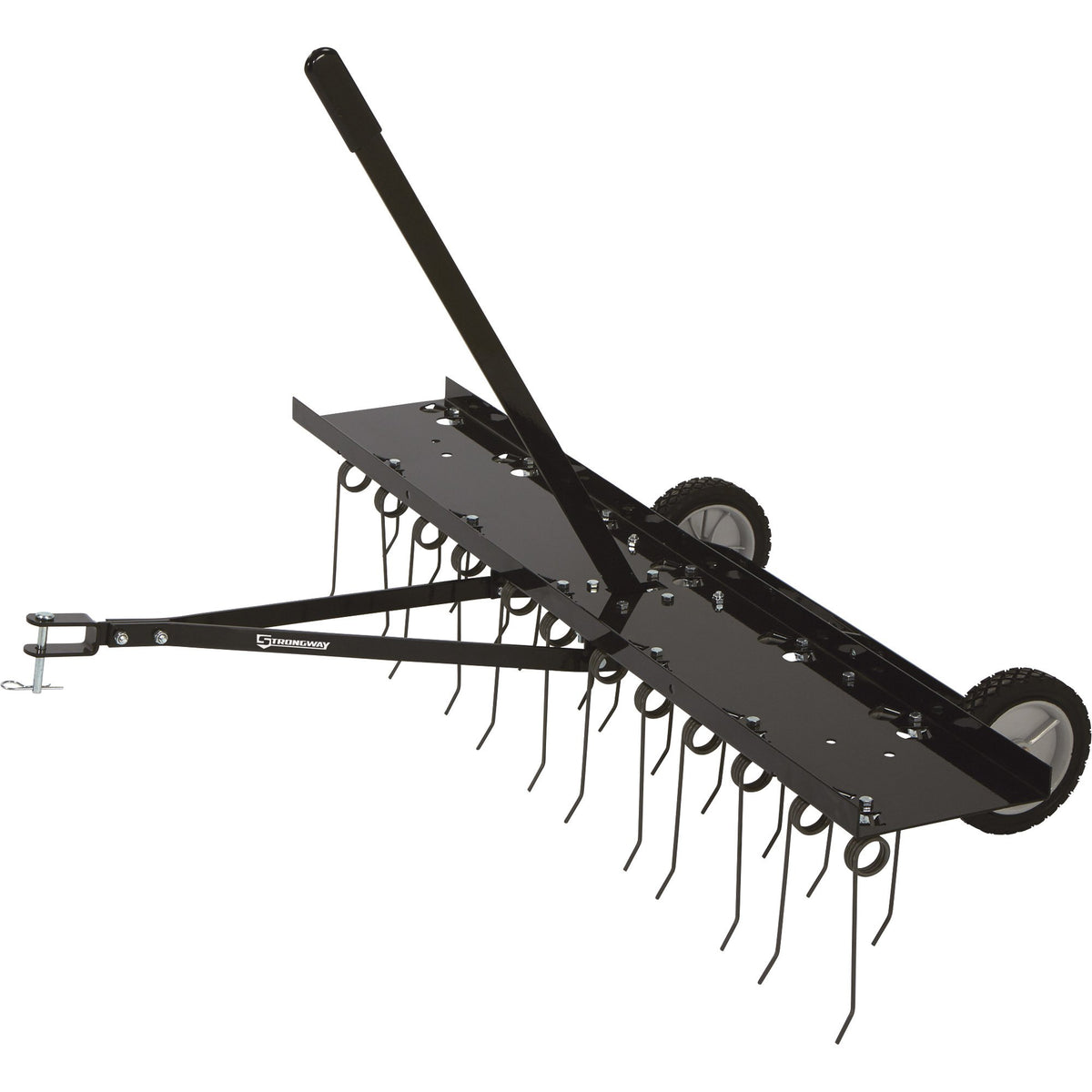 This Strongway™ Tow-Behind Dethatcher has 24 heat-treated 7in. spring steel tines that comb the matted layer of thatch onto one surface for easy bagging or mulching. The tow-behind unit helps give new life to your lawn by aiding with water retention and also by removing roots, leaves, grass clippings and other small vegetation that inhibit growth. 48in. operating width. 60-lb. max. weight capacity.