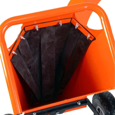 - EFFICIENT PERFORMANCE - This Mini Wood Chipper Shredder Mulcher design has a Reduction Ratio of 15:1, capable of high volume Chipping/Shredding/Mulching via the Large Extended Feeding Chute for up to 3" MAX branches, limbs and garden debris. CR12MoV cutting blades (x2) debris