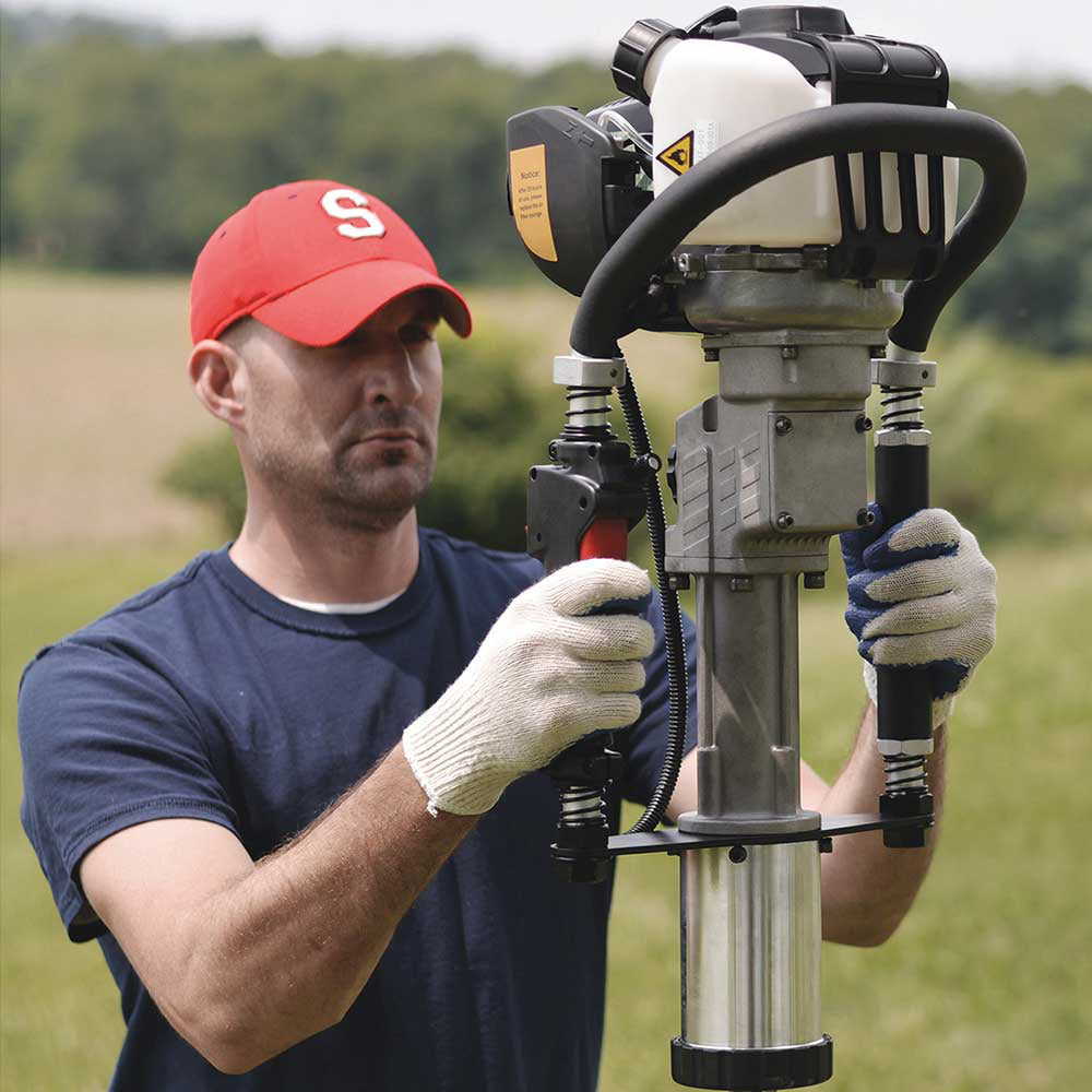Powerful and portable gas-powered post driver. Easy to lift, move, and carry down the fence line. Drives posts in half the time of a manual driver. 3 1/4-in. barrel accepts posts up to 3-in. diameter.
